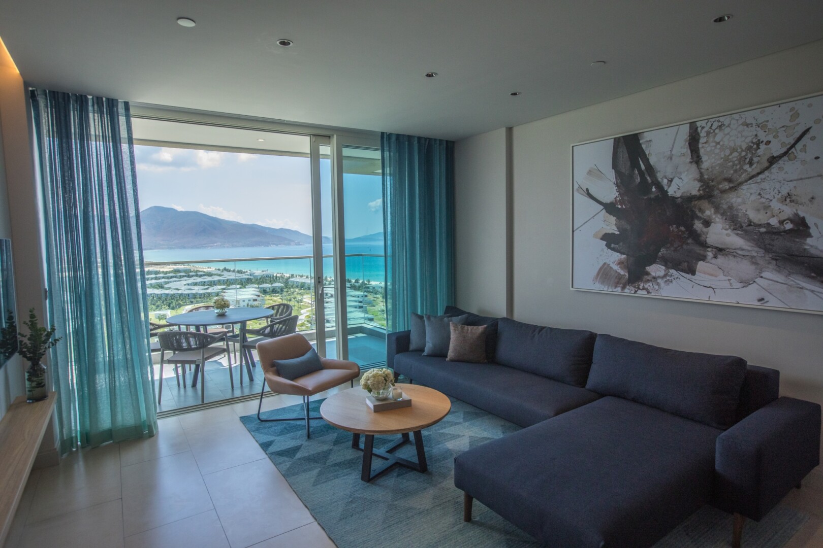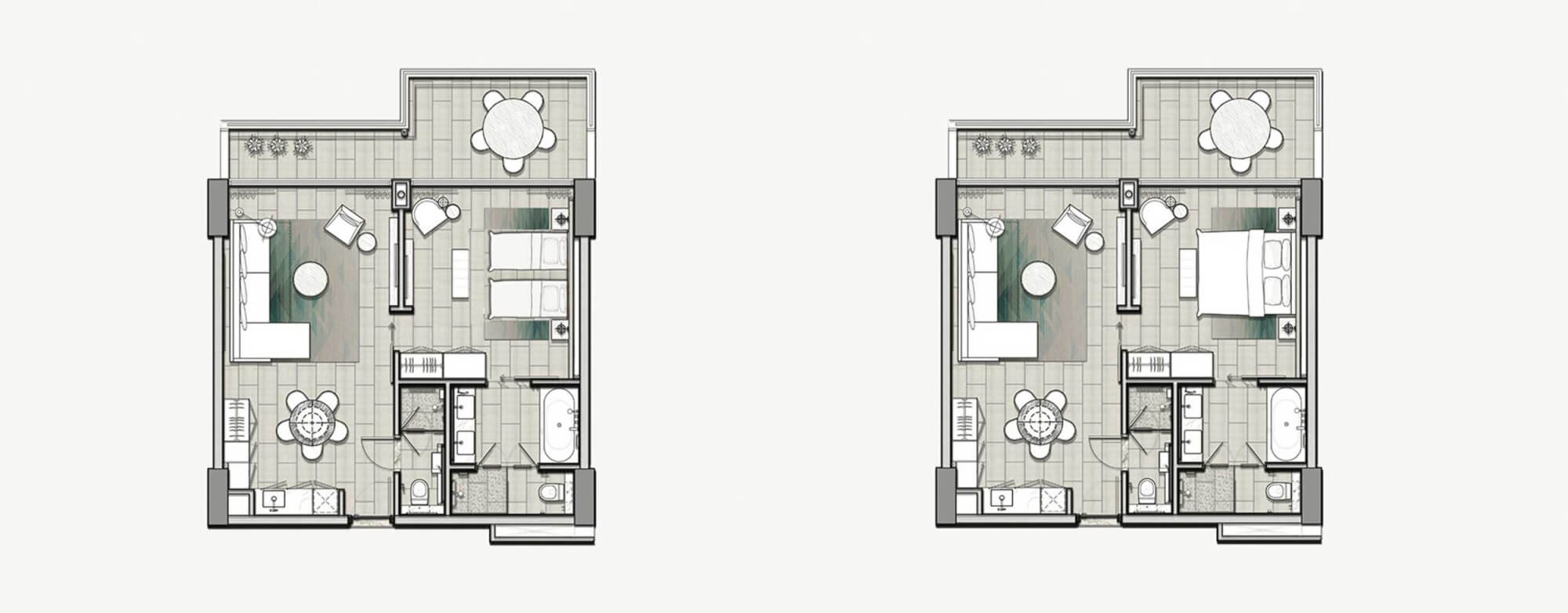 The spacious 70m² Superior Suite is perfect for couples or families with children. Enjoy sunsets from the large balcony with panoramic ocean views. A luxurious bathroom with a tropical rain shower and a kitchenette complement the elegant interior.