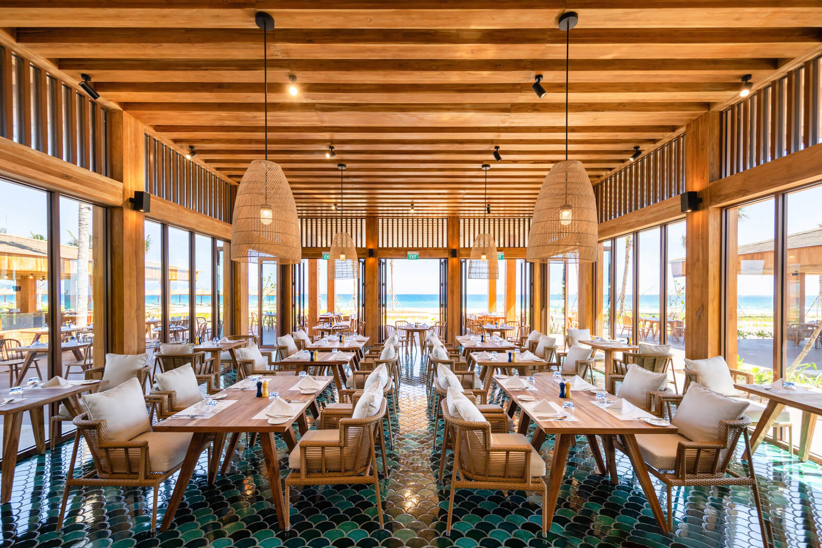 Discover Atlantis, a premier seafood restaurant in Cam Ranh, where pristine ocean harvests meet culinary mastery on Alma Resort‘s stunning beachfront. Our expert chefs transform the finest seafood treasures – from succulent live lobster and delicate sea urchins to Vietnamese favorites like flower crab – into unforgettable dining experiences. Savor the essence of coastal luxury as spectacular ocean views complement each expertly crafted dish.